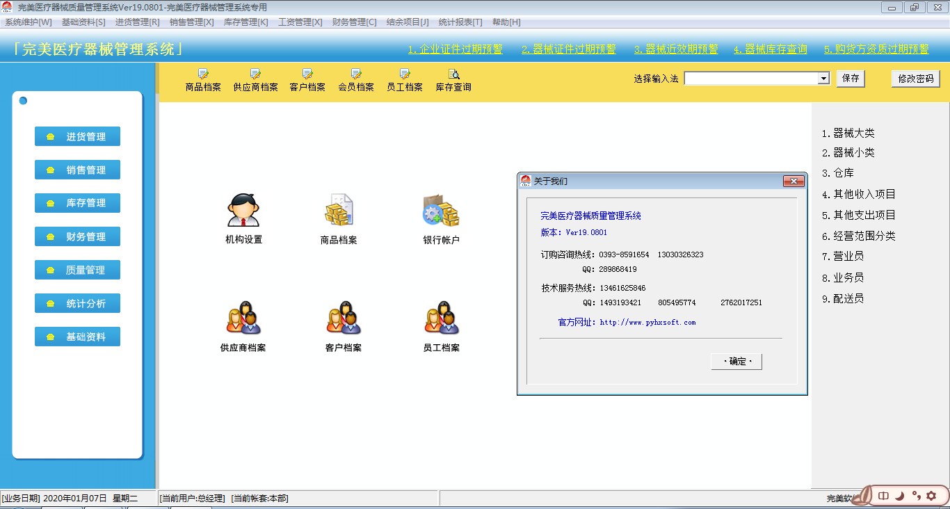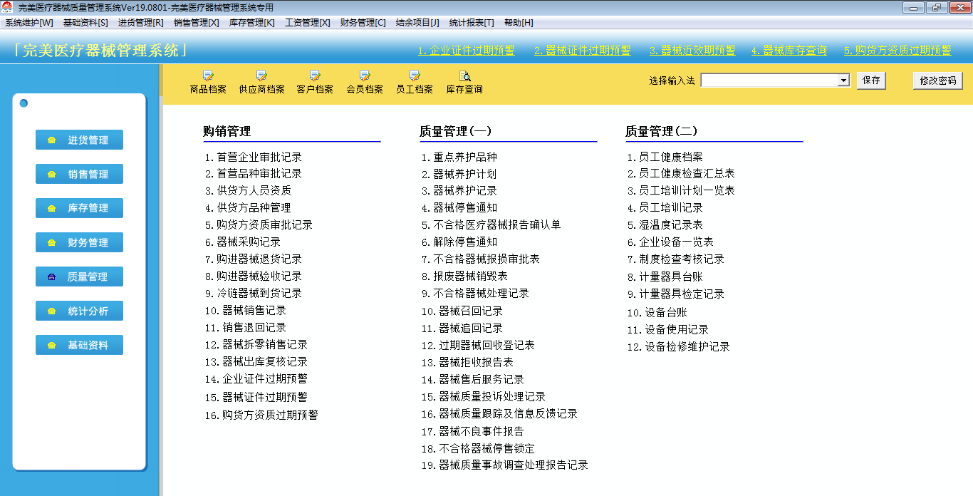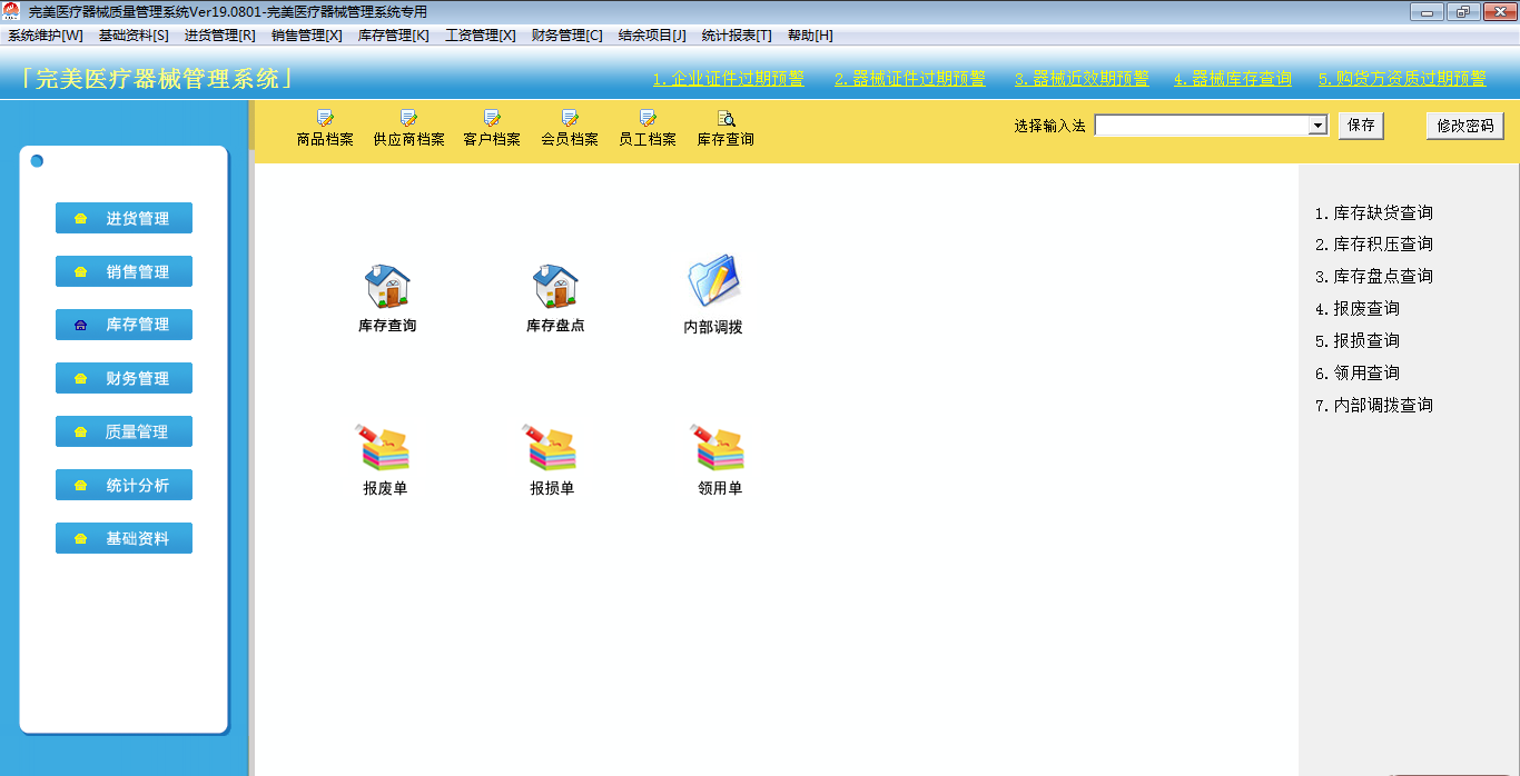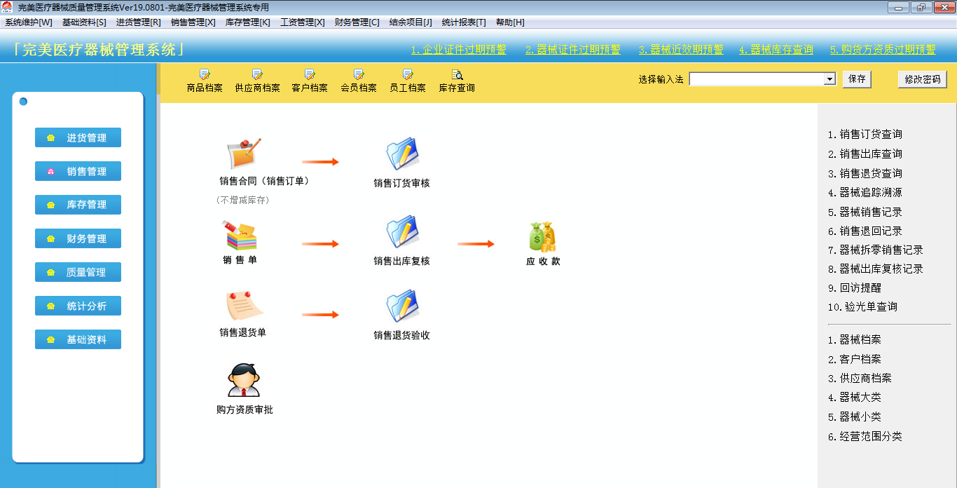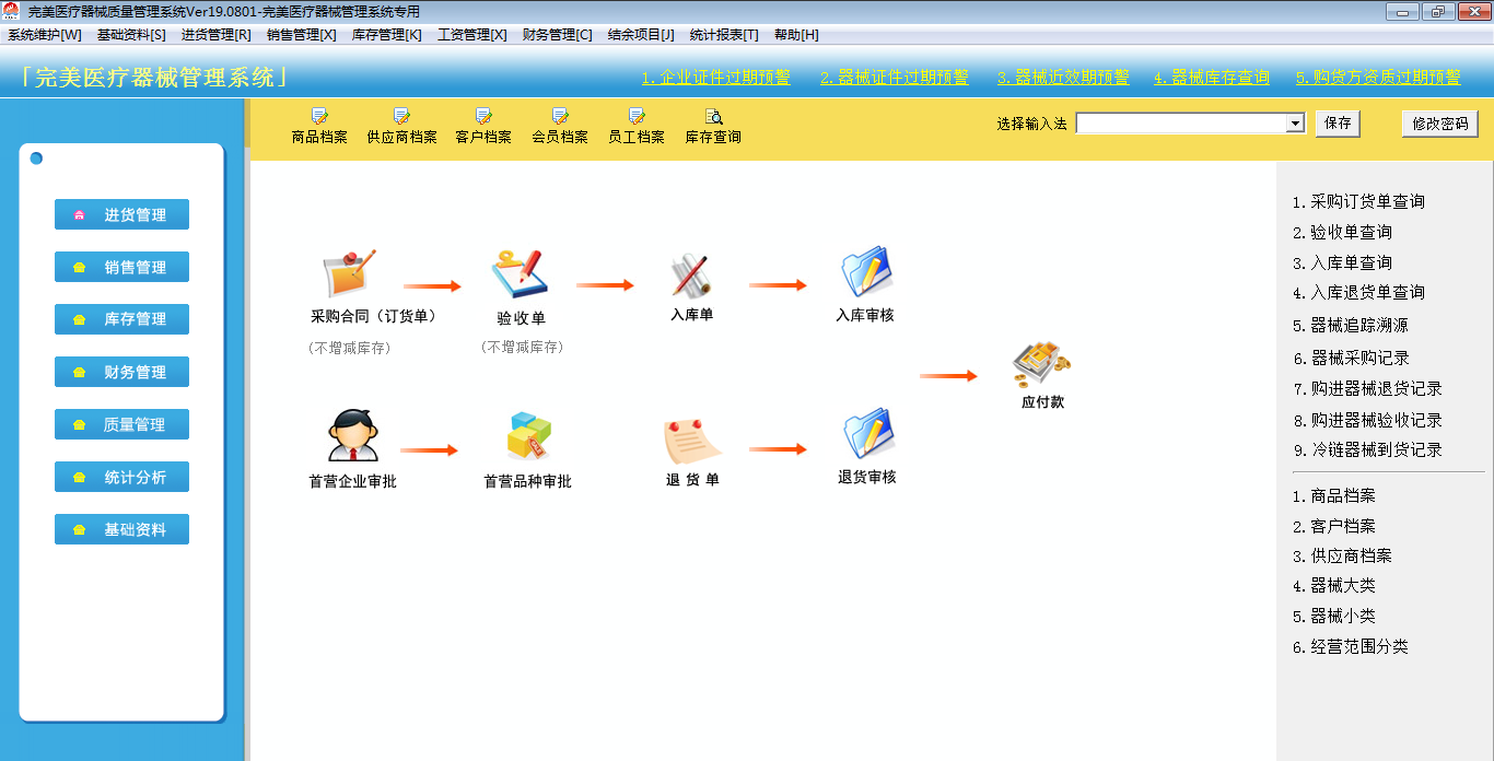 完美医疗器械管理软件除带有进、销、存及财务管理等功能外,符合最新版GSP的要求。