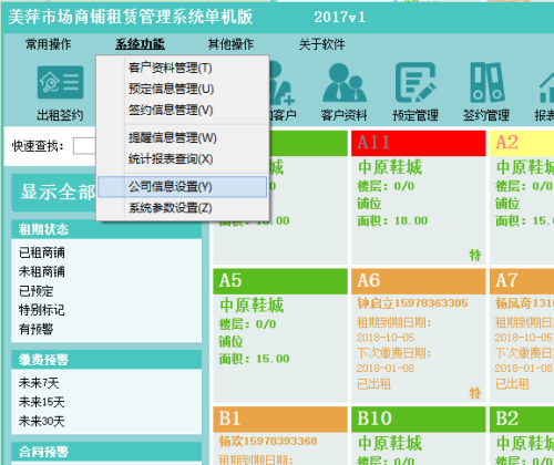美萍市场商铺租赁管理系统(商铺门面出租,市场档口出租,摊位出租管理软件)