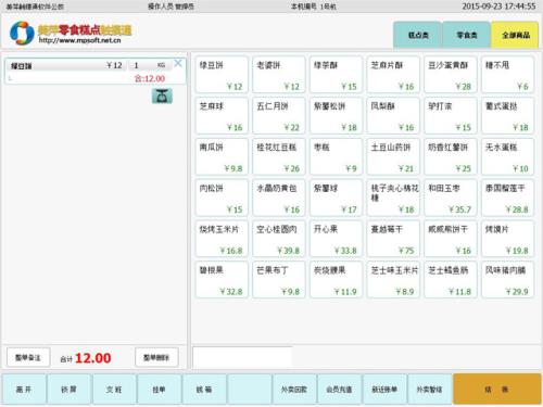 美萍零食糕点触摸通是一款专为触摸屏POS机设计的软件,可完全脱离键盘鼠标进行全触屏操作,界面简洁、操作直观、 技术成熟,完全切合行业特点,无需培训,更优点单流程,点单结账更快2秒,方便强大的退换商品功能,彻底解决销售中的 困扰,商品条码扫描和称重完美结合,让零食店糕点店收银真正快起来;后台有完善的商品管理和强大的报表统计,让您的管 理真正简单到底!广泛适用于需要称重销售的零食店、食品店、干果店和中式糕点店等使用电子称计量销售的店面
